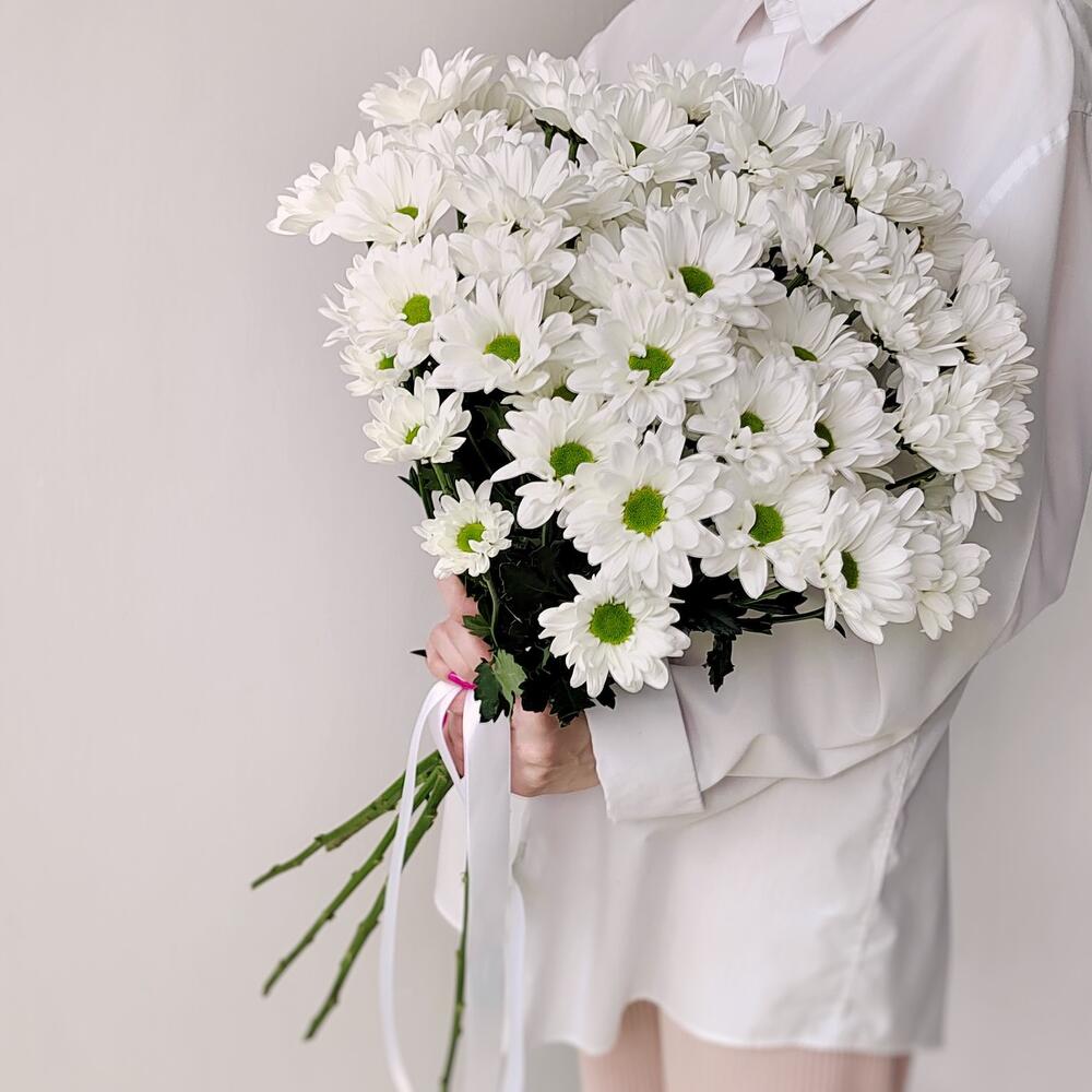 Очаровательный букет «Ромашка» из 9 белых кустовых хризантем напоминает летнее поле. Эти пышные цветы с нежными лепестками создают атмосферу чистоты и уюта. Идеальный выбор для подарка близкому человеку или украшения интерьера. Хризантемы в Анадыре.